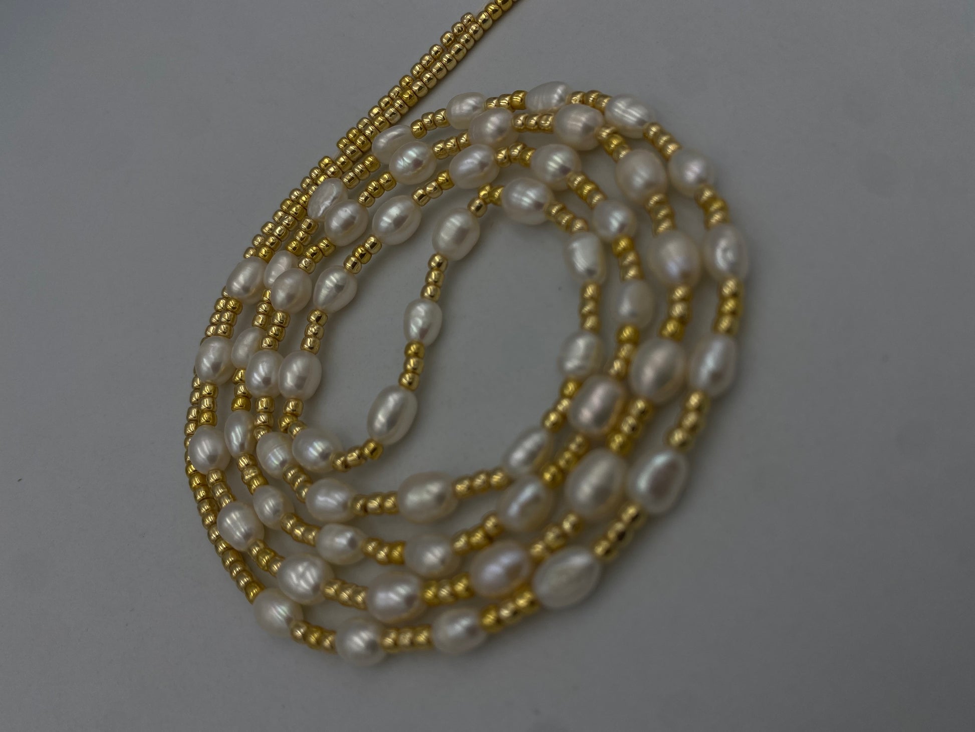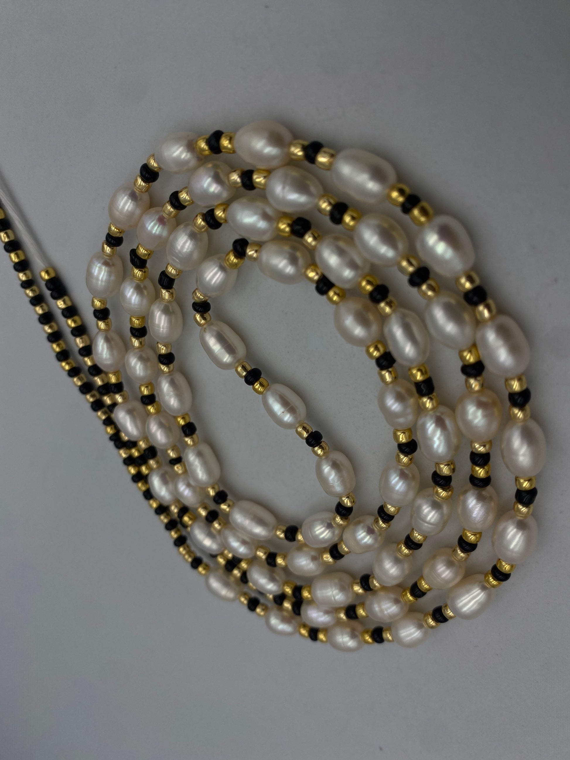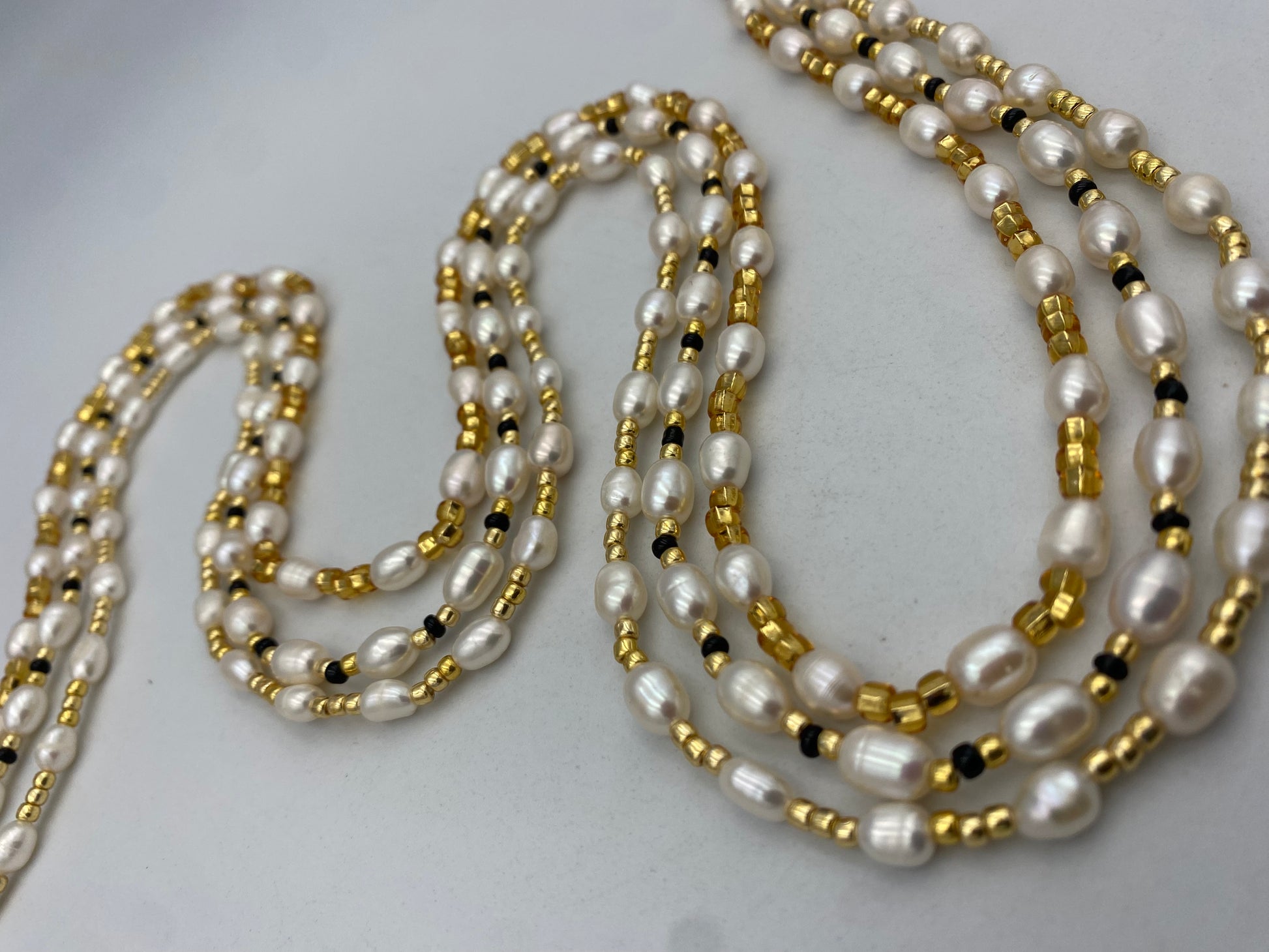 Freshwater Pearl & Crystal Waist Beads – 45” Permanent Tie-On Jewelry~ Choose Your design