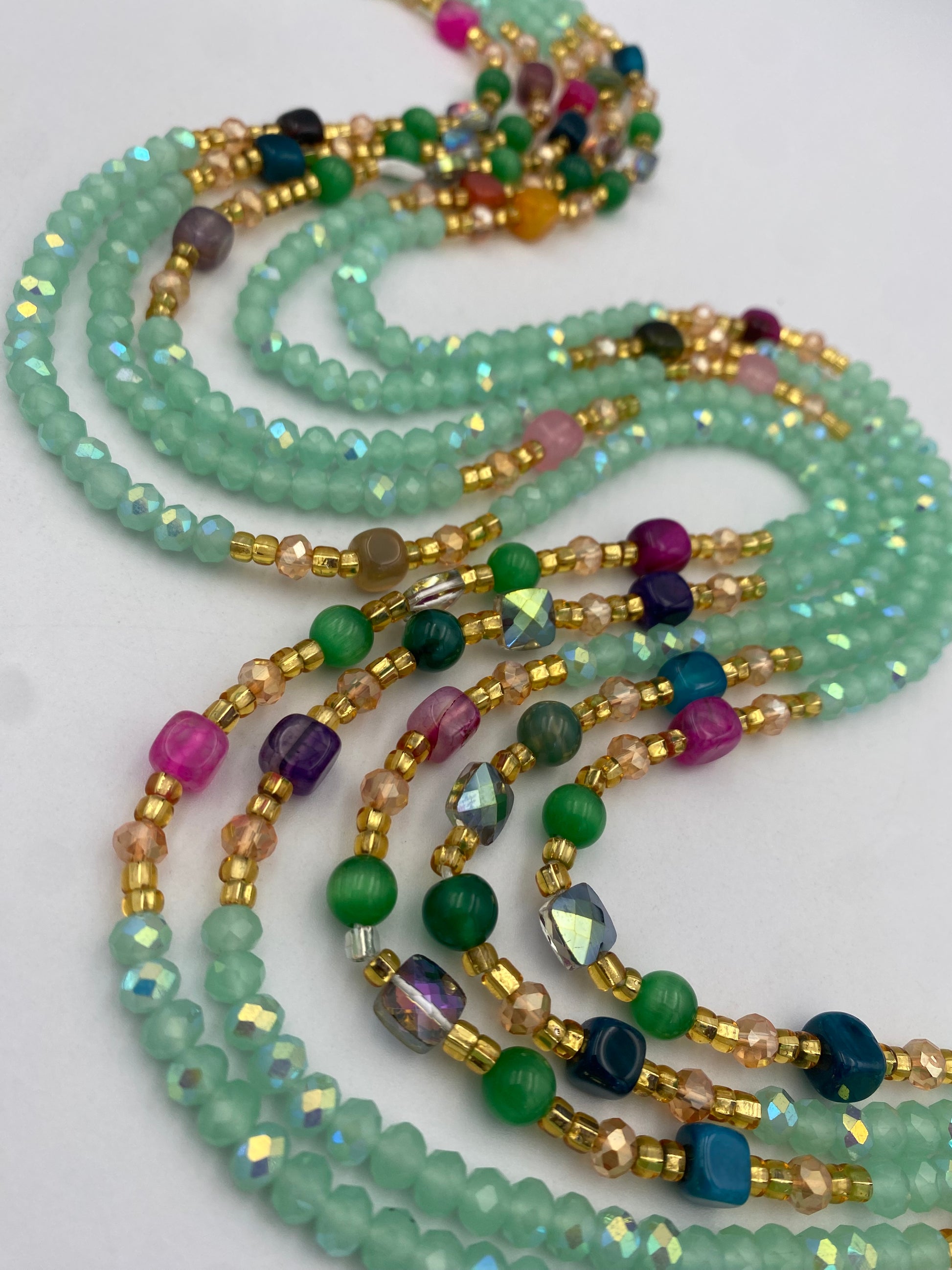 Joy~ Mint Green Crystal Waist Bead | Waist Beads – Luxury Tie-On Beaded Jewelry | Green | Body Adornment & Weight Tracking | Price Per Item | 45–Inches