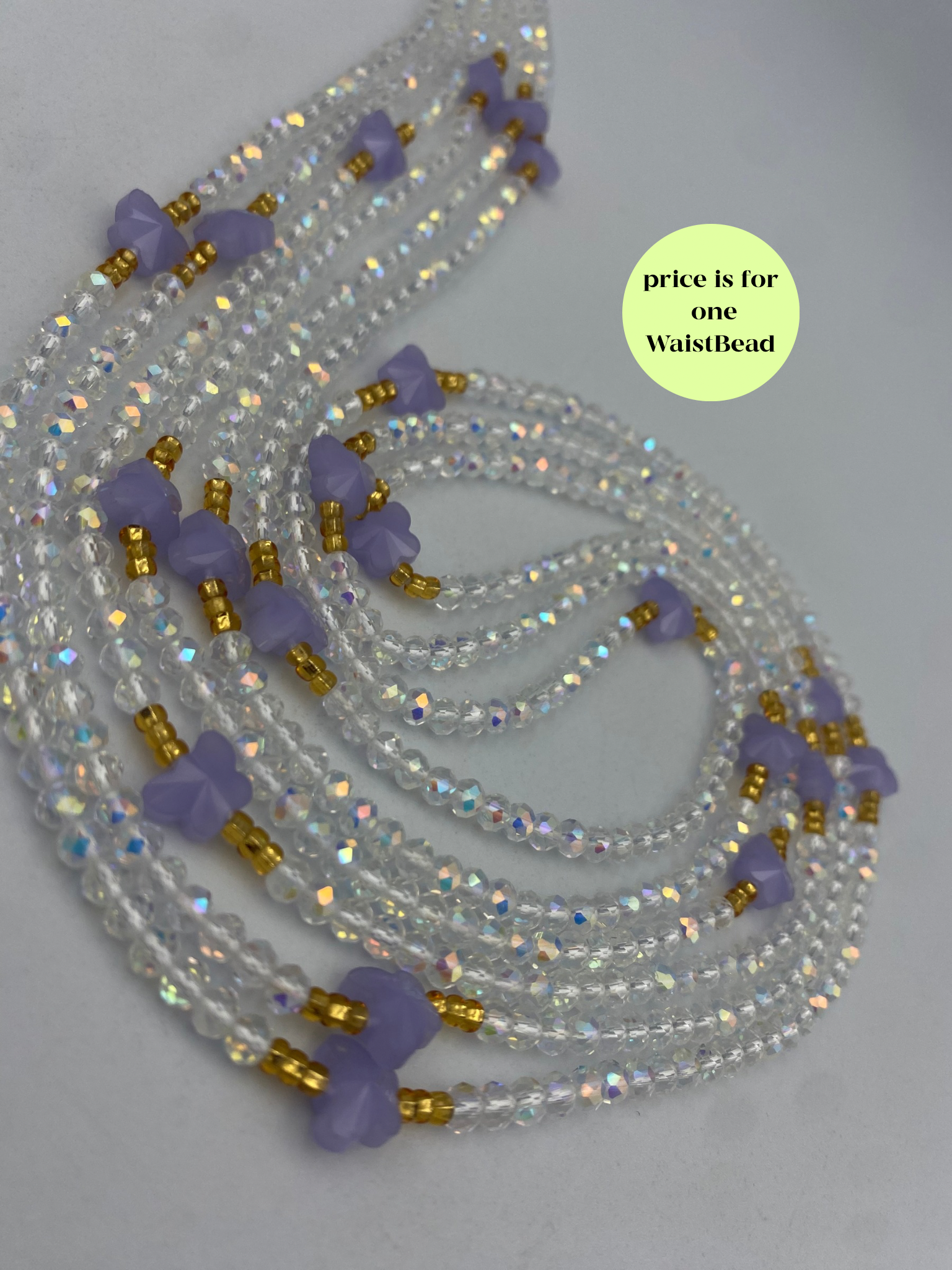 Heaven’s Whisper ~Silver & Purple Butterfly Crystal Waist Bead- Price per WaistBead