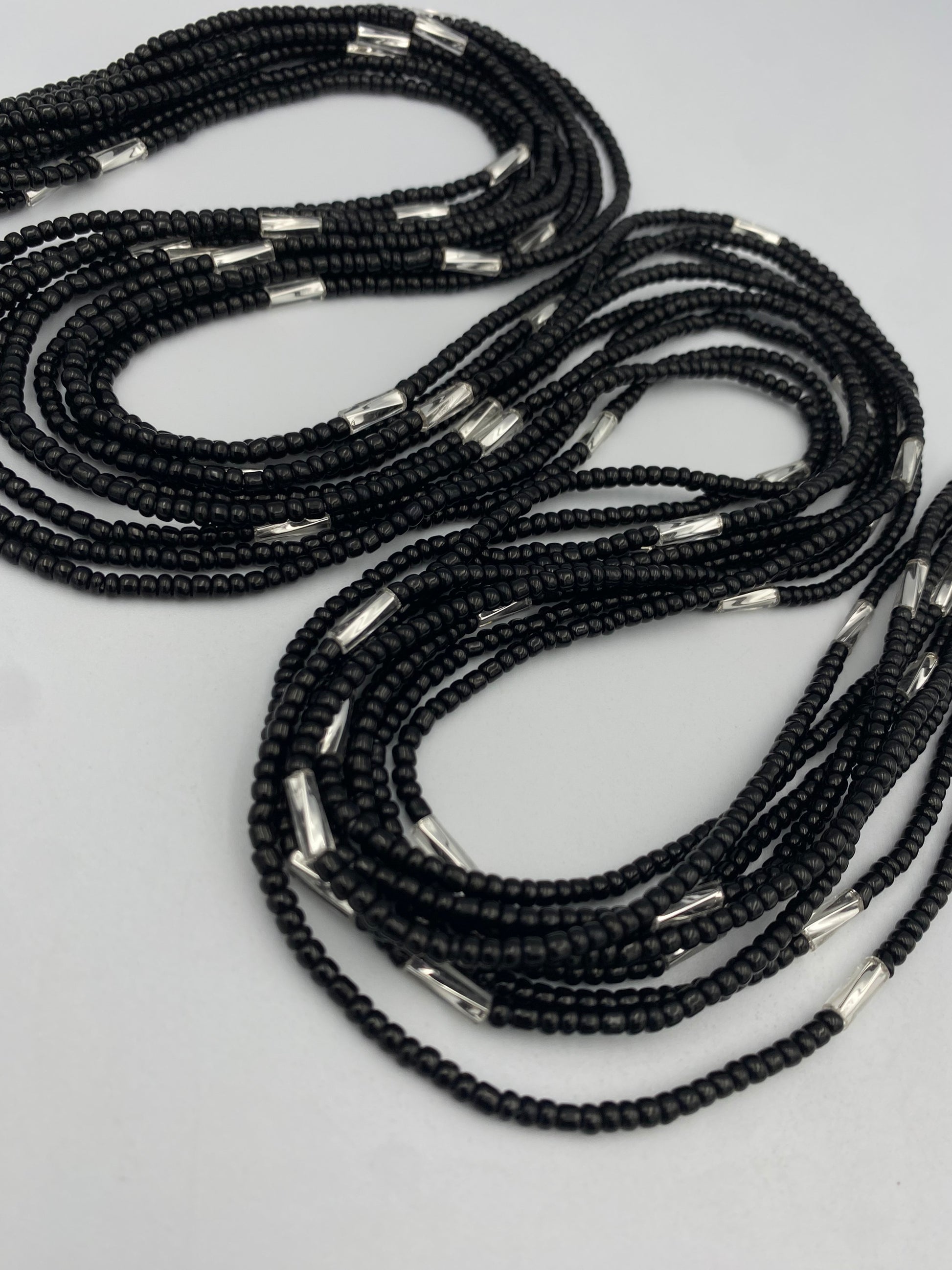 Black & Silver Waist Beads | African Body Jewelry | Price per Waist Bead (45”-50”) – Tie-On