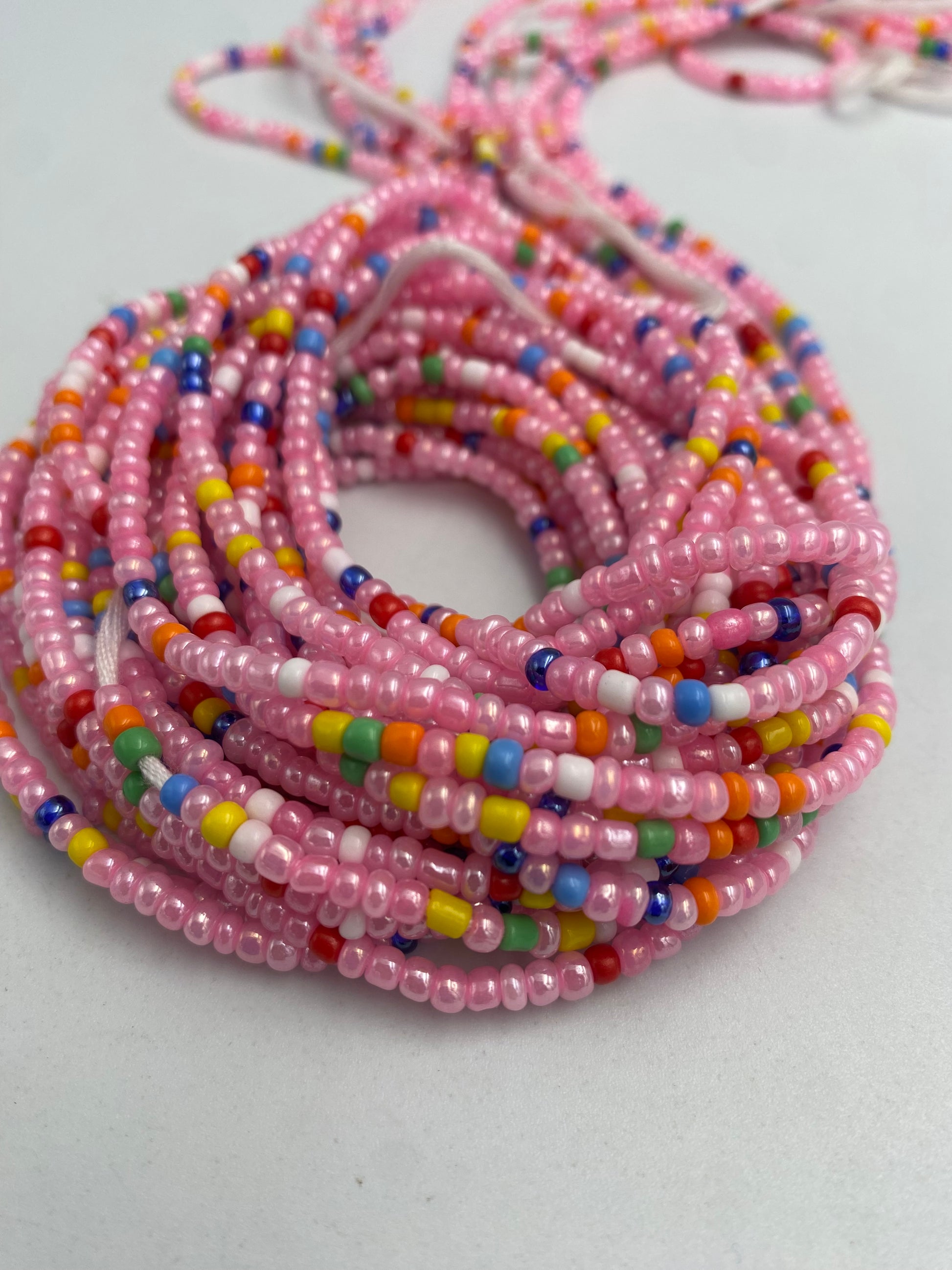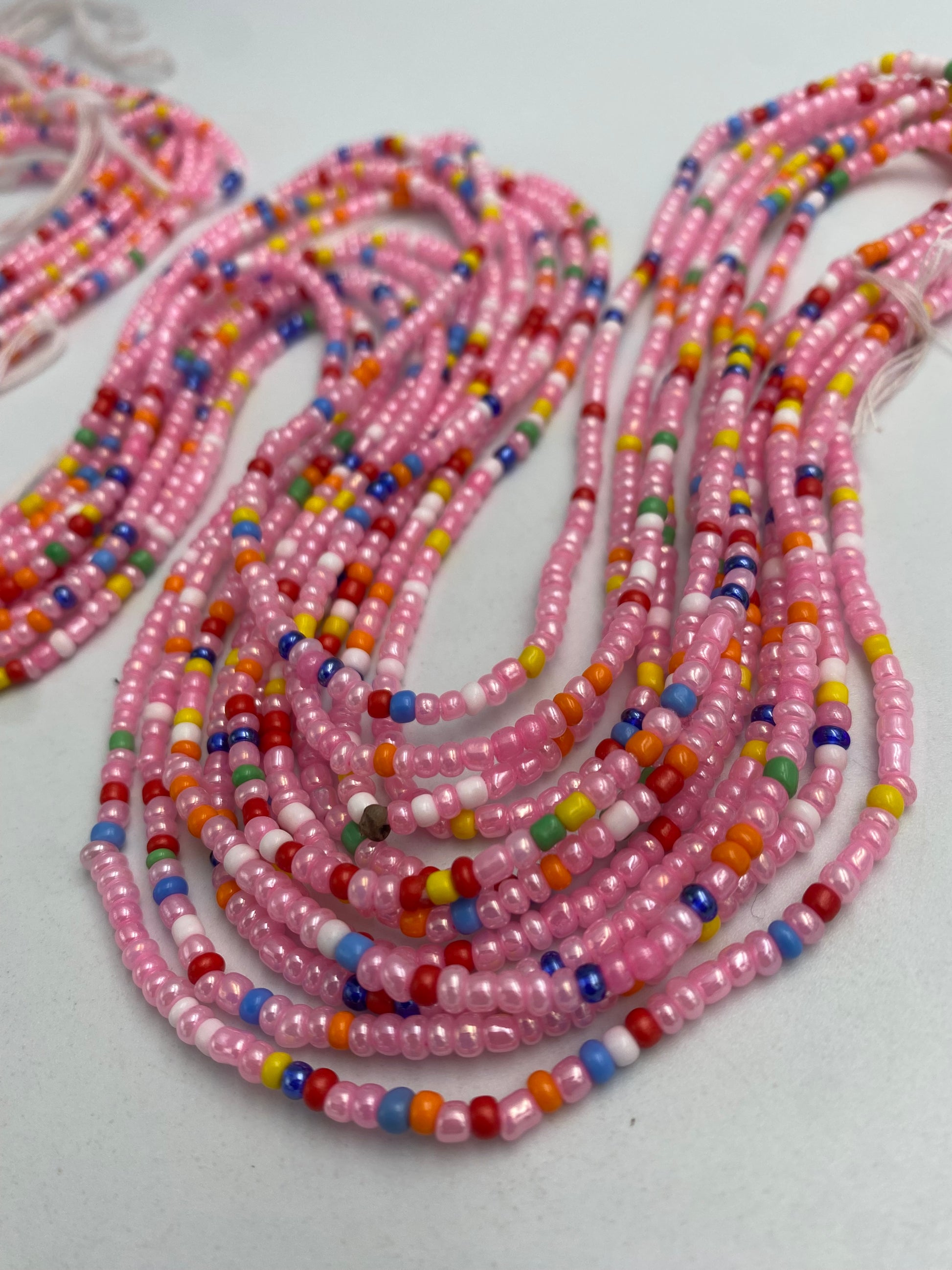 Pink- Waist Beads – Tie-On African Waist Bead Strand for Women, 45-50 Inches Adjustable, Body Jewelry for Adornment, Promoting Body Positivty & Weight Managemen