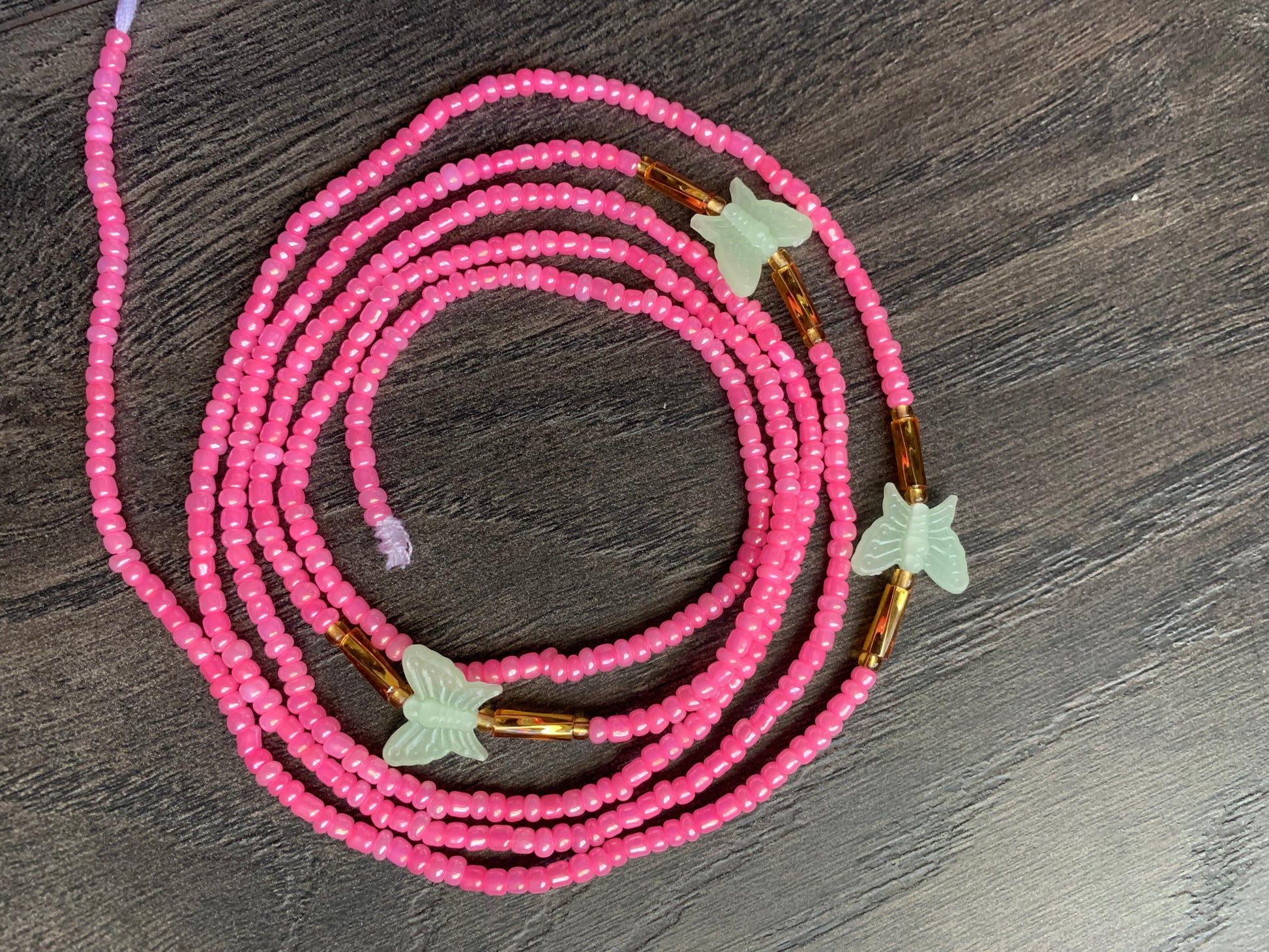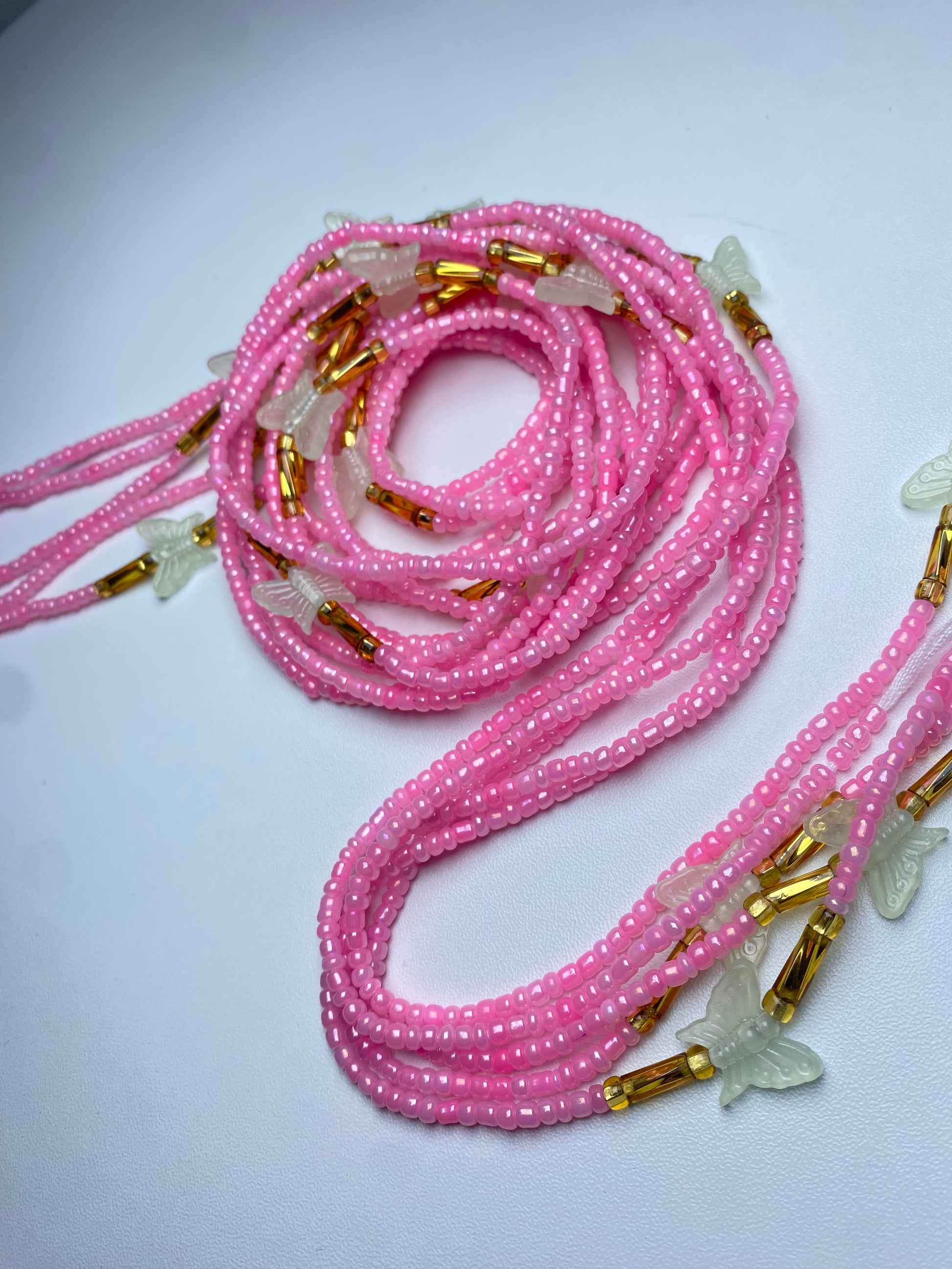 Pink Waistbeads With Glow in the Dark Butterflies Waist Beads- Tie on 45"-50