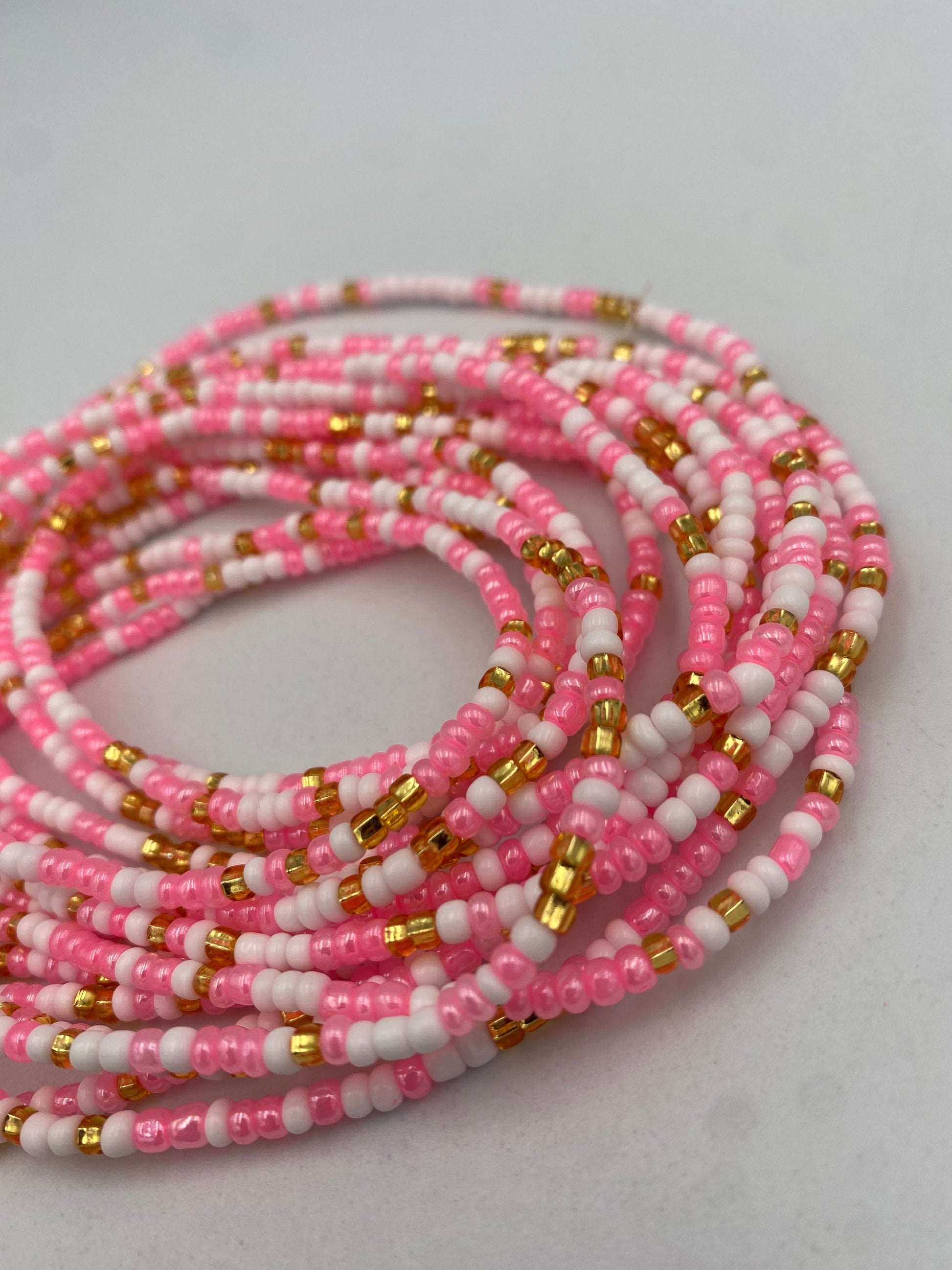 Pink White and Gold Waist Bead- Price Per Waist Bead- Add to cart- Tie On 45”-50”