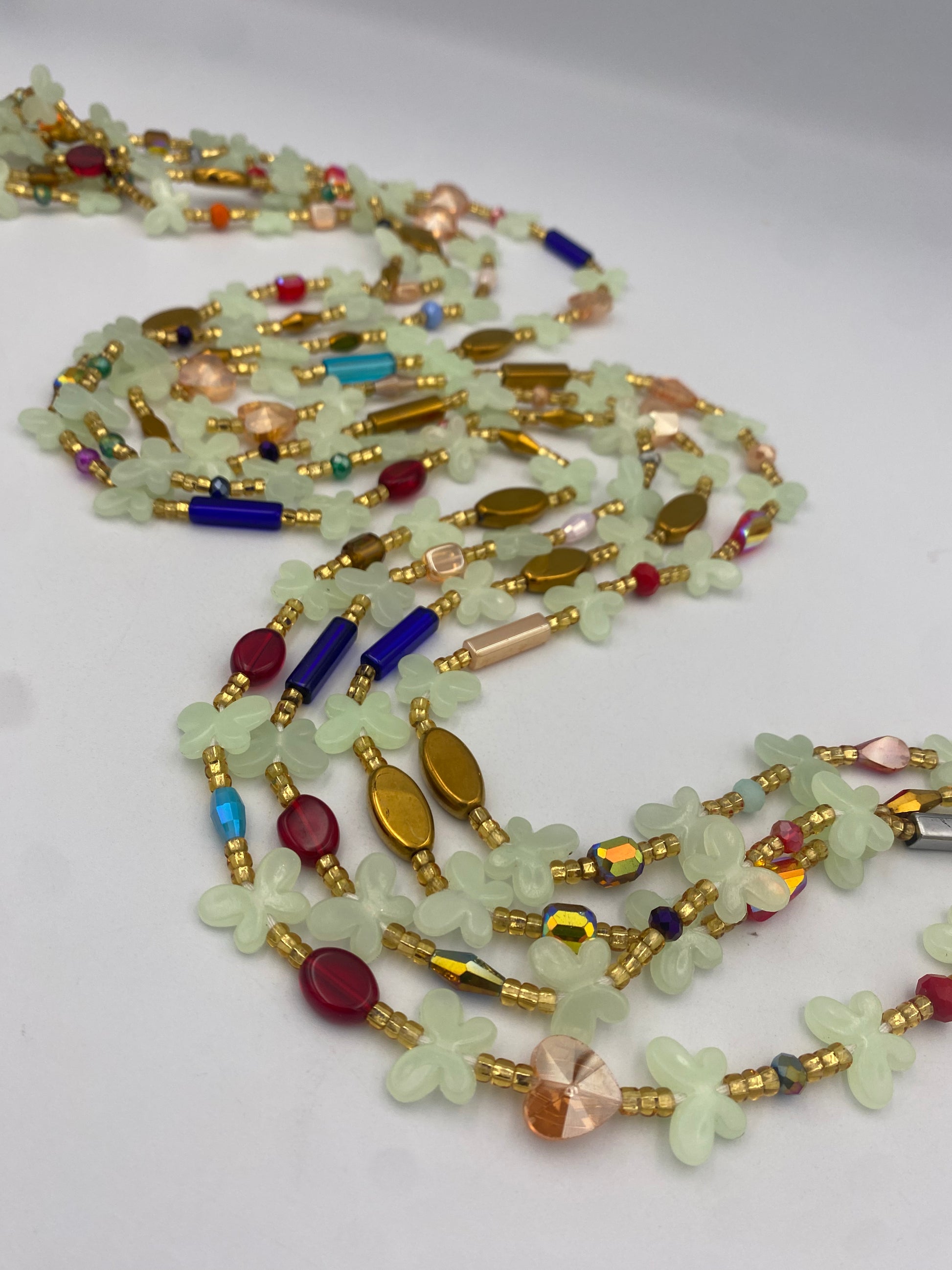 Subtle Glow in the dark Waist Beads- Blue and - Butterfly waistbeads-Tie On 45"- 50"- Price Per Waist Bead- Add to Cart Now